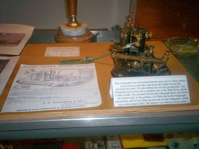 One half of a telegraph set used by the J. B. Rich store and the late Wallace H. Rich. It was located in his home on the River Road, and connected to the store, which was across from the present-day Coffee Pot, nearly three miles away. A demonstration was given by Mr. Rich’s great-grandsons.............Continue Reading.