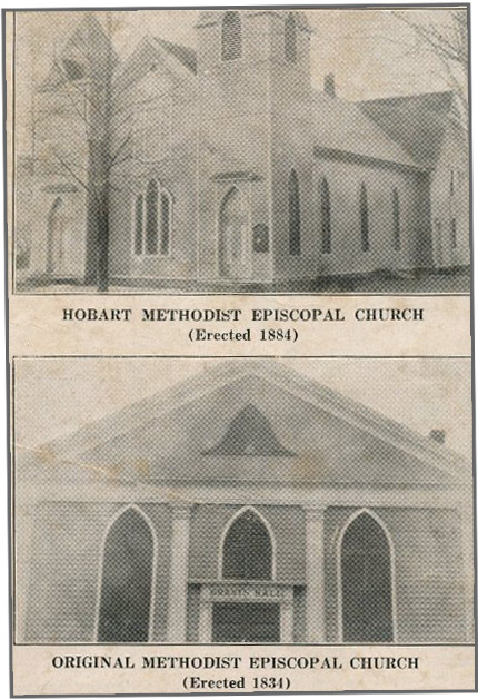 In 1834, at a meeting in the home of John Allen, the Hobart Methodist Society was organized. This became the second society for the residents of Stamford, Kortright, and Harpersfield. The church was built on the present site that year, and dedicated with a Sabbath School in 1835. The Rev. Bezeleel Howe of the Kortright Circuit was its first pastor. Hobart and Township have shared their pastor, except for a short period around 1857.